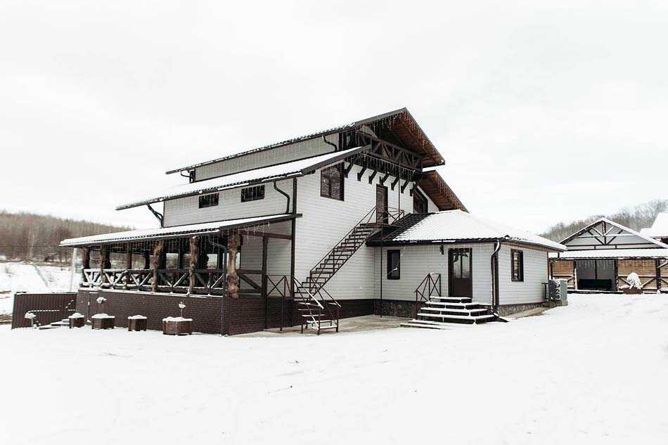 На території розташований триповерховий котедж на 7 номерів (14-18 місць), котедж на 6-7 осіб, чан, відкритий плавальний басейн, альтанка з мангалом, неподалік — ліс та ставок.
